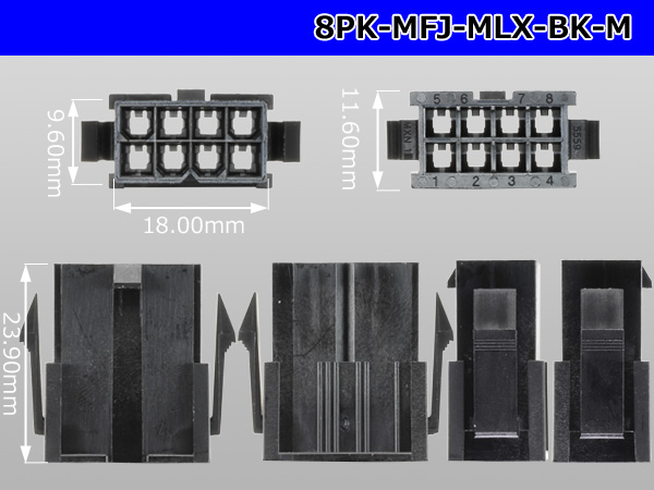 ●[Molex] Mini-Fit Jr series 8 pole [two lines] male connector [black] (no terminal)/8P-MFJ-MLX-BK-M-tr [Back]