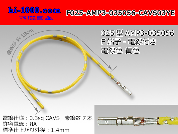 This product is a TE 025 Tab Size 0.64III Series Unsealed Female Terminal "F025-AMP3-035056" crimped onto a Yazaki CAVS 0.3 sq wire.