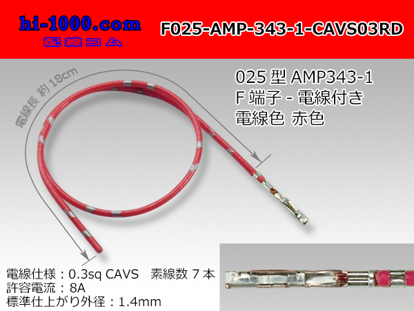 This product is a TE 025 Tab Size 0.64 Series Unsealed Female Terminal "F025-AMP-343-1" crimped onto a Yazaki CAVS 0.3 sq wire.